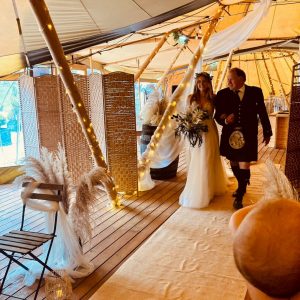 Licensed for civil marriage ceremonies for up to 120 guests, and with exclusive use per weekend or week day, you will have private use of the tipis throughout the day and evening for a very personalised and intimate wedding experience.